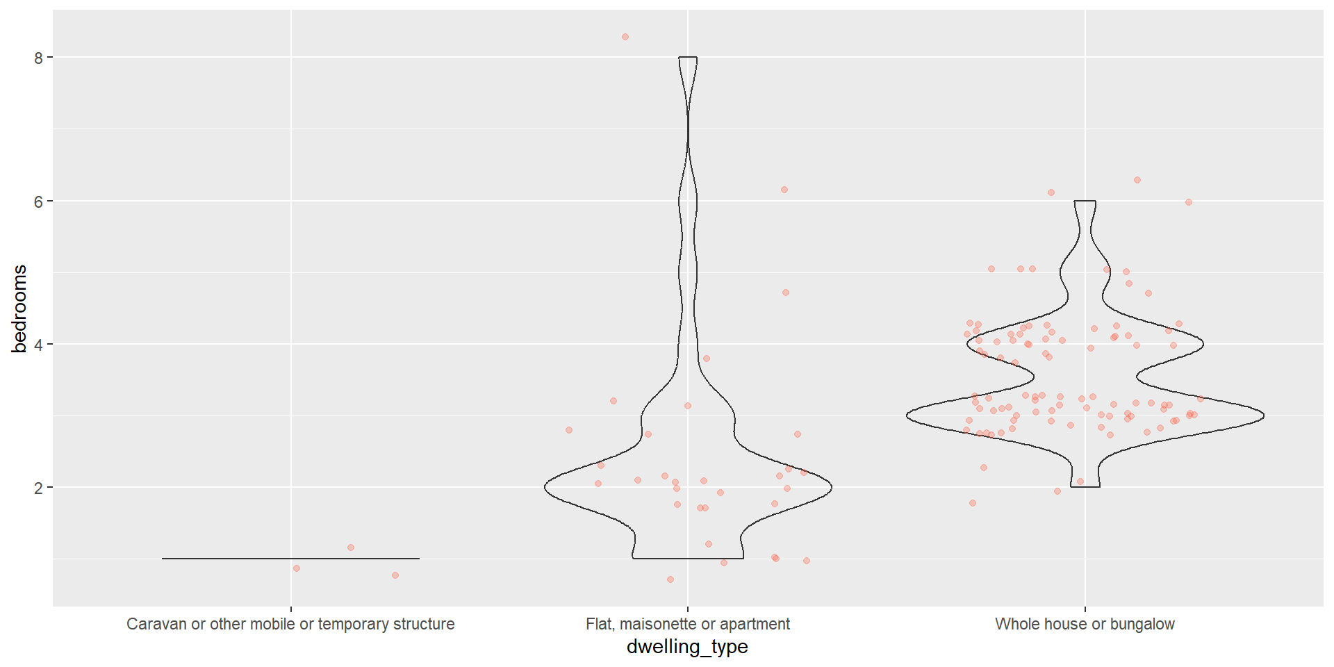 Use what you just learned to create a scatter plot of cars by household_size with the dwelling_type showing in different colours.
